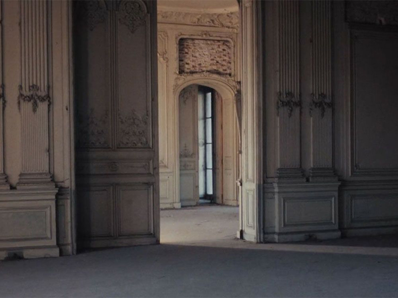 From this point on, the soundtrack becomes multi-planar, combining the voices of depicted characters at a consulate evening function (always breaking into speech just as they move outside of frame) with the chattering of gathering guests (never seen) and occasionally shifts from interiors where bluesy ragtime piano music accompanies the guests (though the visible piano is never manned or performed) to evocative exteriors. These voices become multiplied, all circulating within the orbit of consulate services and internal careerist moves, cushioned by indistinct background chatter, often mixed with the unseen phonographic playback of tango, mariachi and waltz recordings (all by composer Carlos D’Alessio). Anne-Marie is often shown dancing with various beaus, engaged in what seems like psychic dialogue with her silent partners. Their bodies move in time with the music’s tired tempo, but their lips never move. More than once, she strikes a frieze, distracted by something off-screen. At one point she describes her numbed state as “a sort of pain linked to music”.