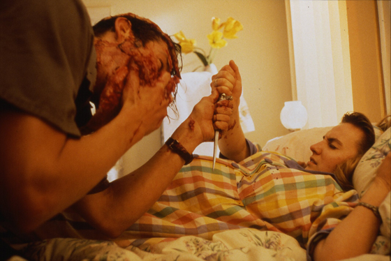 2. The 'themes' or musical fragments which make up the score are essentially a landscape of stylistic traits which are attached to the character's in certain situations. Various submixes of these 'themes' reflect variations of their situations. Cliches are deliberately explored in keeping with the generic base of the film. These musical fragments were composed first as 'songs' then broken down to perform as thematic fragments.