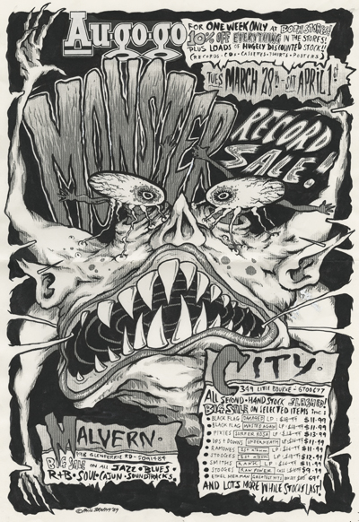 For events, record stores, labels, bands & magazine advertisements - ordered chronologically