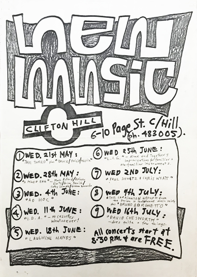 2. New Music Clifton Hill Community Music Centre concert calendar - B&W A3 photostat