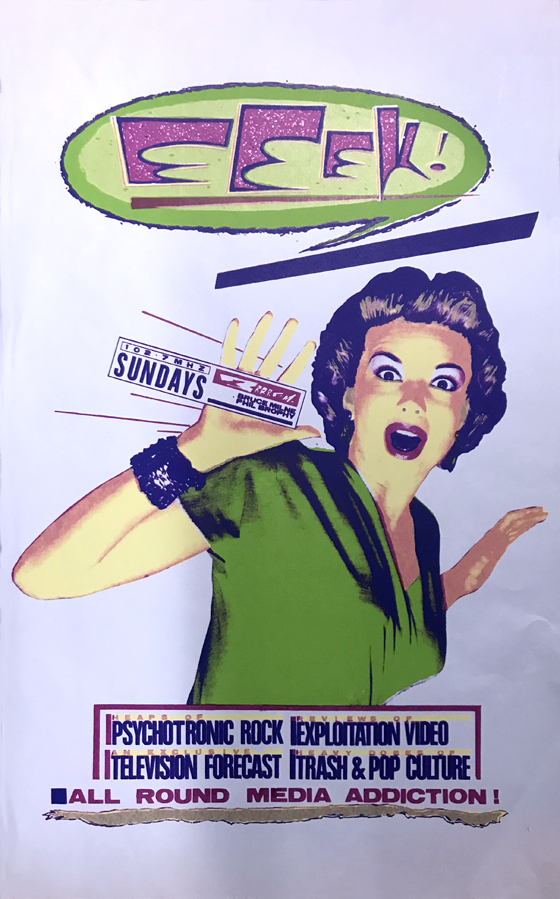 1. Eeek! radio show - 4 colour hand-silkscreened on coloured paper