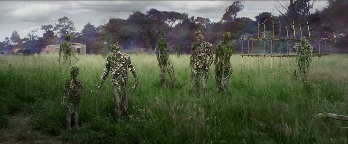 The Shimmer visually references the Louisiana swamps—the US version of the humid meltdown of flora in Amazonian rainforests. Due to alien terraforming, it bears inexplicable overlays of inter species aberrations of flora and fauna. In these pastoral moments, Barrow & Salisbury’s music merges with the sound design to create a sweaty meld that calls back to the prelude and breakdown moments of Junglist soundscapes (jets, gunshots, crickets, birds, sirens) in early 1990s tracks by Acen and Hyper on Experience—not to mention the contemporaneous likes of The Orb’s Adventures Beyond The Ultraworld (1991) and FSOL’s Accelerator (1992). The further the team venture into the mutating terrain, the more unreal their sensory world becomes. At one point, a two-string acoustic guitar line is vamped gently over digital synth pads. Combined with visuals of the strange terrarium jungle, the vibe is not unlike the hallucinogenic atmospherics again of Apocalypse Now (whose original double-LP release in 1979 retains this sono-spectral fusion avant le lettre of Fourth World Music).