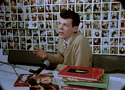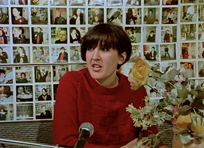 A short 16mm film, first made as a Super 8 film by → ↑ → in 1982. The Celluloid Self takes the form of a seris of interviews with people, each placed at a table speaking into a microphone, prodded by an off-screen interviewer. Each of the 3 actors plays 3 different characters. No attempt is made to make the actors resemble, appear or invoke the people (famous, actual, invented) they portray. Despite them all discussing aspects of their lives and work, not a single word of convincing truth is uttered in the film. Let's call it docmentary in drag.