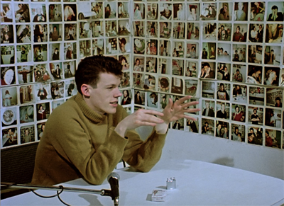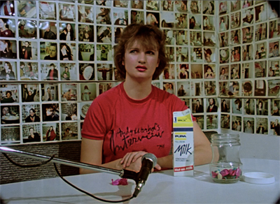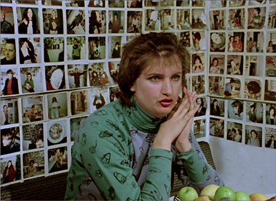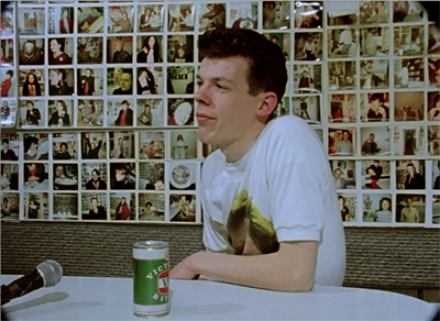 The shoot for the 16mm version of The Celluloid Self took place over a single day in August 1983. A small crew was assembled in the kitchen of Philip and Maria, who both perform in the film along with Linda Barron. The script (a brief outline containing no dialogue) specified each character. The filmed dialogue was improvized and recorded on the first take. The looseness uses 'naturalistic' performance to facilitate the falsity of who and what the performers are betraying. The photos on the walls behind the performers are a collection of Kodak Instamatic snapshots taken by Philip and Maria of all and any visitors to their place. Everyone always performs for the camera: that statement of truth merges the 'real person' (docmented in the snapshot) with the 'reality' of the mask they project. The Celluloid Self is a filmed extension of that phenomenon of constructing and presenting a 'self' to the world—a world that in this case is no larger than a pathetic kitchen in a rented house.