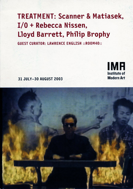 Brophy has painstakingly re-synchronised the incidental sounds of the video clips. Footsteps, newspapers and ice blocks are now recast as swirling, cracking and crushingly metallic techno elements, disorienting our psycho-acoustic understanding of the video space. Visceral, intense, and claustrophobic, the overall effect is pretty hilarious. That Brophy loves the stuff that annoys him is obvious, and part of the pleasure of his work is the clear delight he takes in re-appropriating the degraded sentimentality of the commercial Pop promo. His press release enticingly describes his subjects 'drained of all excess and tawdry humanist bile, their bald and bloated bodies hollow, their music evaporated into surround-sound air'.